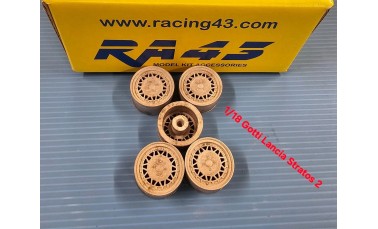 Set 5 cerchi in metallo, con gomme. Da verniciare.